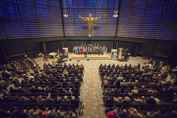 Am Abend gestalteten in der Kaiser-Wilhelm-Gedächtnis-Kirche der Sozialintegrative Chor „Different Voices of Berlin“ und die Sängerin Jocelyn B. Smith eine musikalische Feierstunde. Viele Berlinerinnen und Berliner waren der Einladung von Grieneisen Bestattungen zu diesem Konzert gefolgt.